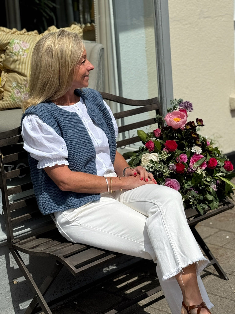 The GRINGOU cardigan is a must-have from the brand and will quickly become one of your favorites. It's perfect for the mid-season over a blouse,tee or dress and offers a very pleasant sensation when you wear it. Its textured fancy stitch adds a glamorous and refined style to the piece. Sleeveless, with a round neckline, and finished with ribbed edges, it pairs perfectly with a dress, a T-shirt, or a blouse.