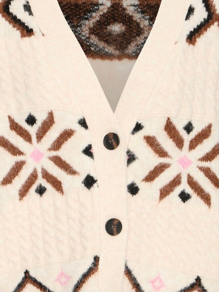 Elevate your wardrobe with the Aztec Print Cardigan by B Young, a sophisticated layering piece that combines bold geometric patterns with expert craftsmanship. Designed for both comfort and style, this cardigan offers a versatile fit ideal for transitional weather. Its distinctive Aztec print adds a contemporary edge, making it a standout addition to any outfit. Perfect for those seeking a refined yet statement-making knitwear option.