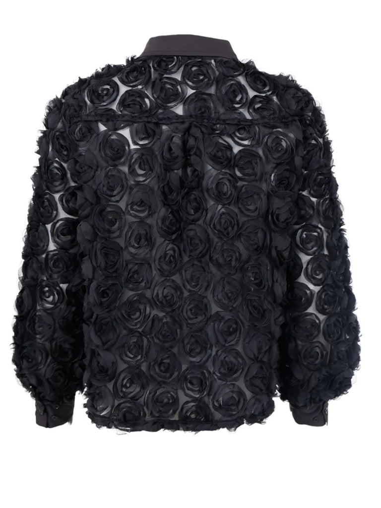 Make a statement with effortless elegance in our Black - Coloured Floral Ruffle Blouse. Featuring floral ruffles, this blouse is the perfect blend of romantic charm and modern femininity. This can be styled open over a dress or paired with jeans making this a versatile piece for your wardrobe.