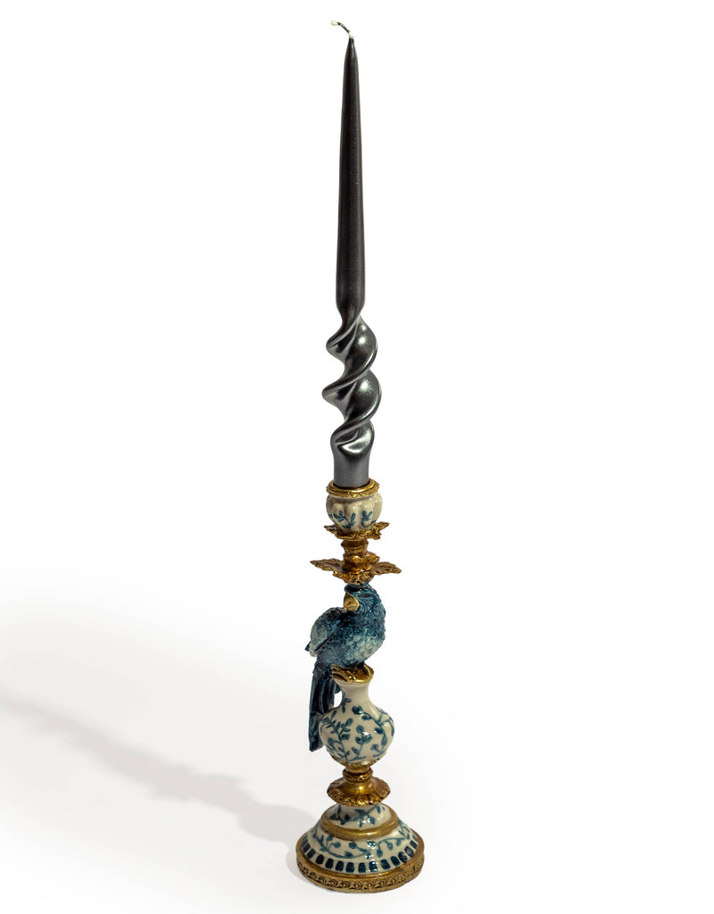 Antiqued Ornate Blue White Parrot Candle Holder candlestick decorative interiors Left Hand Option