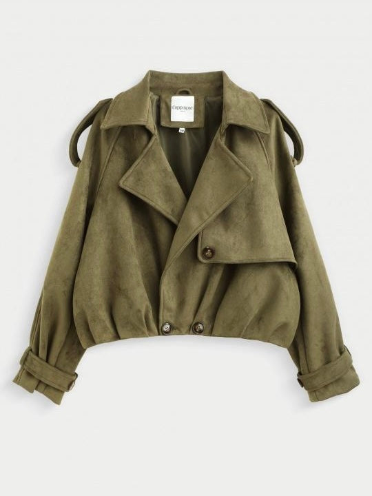 This Classic Faux Suede Khaki Revere Jacket is a perfect timeless wardrobe essential, blending sophistication with soft, tactile luxury. Crafted in a camel hue, the jacket features a revere collar for a refined, open-lapel look that elevates both casual and tailored outfits.