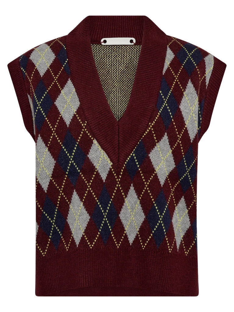 Burgundy Check Knit Tank By Co’Couture