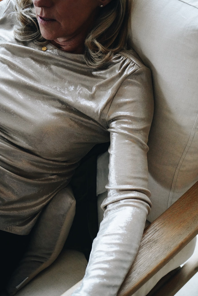 Champagne Jersey Lurex Blouse by Co’Couture
