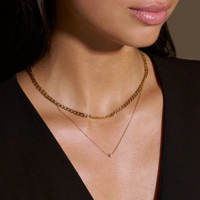 This Fine Crystal Collar Necklace is the perfect accessory to add a hint of sparkle to any outfit. Featuring a fine gold chain holding a micro crystal charm.