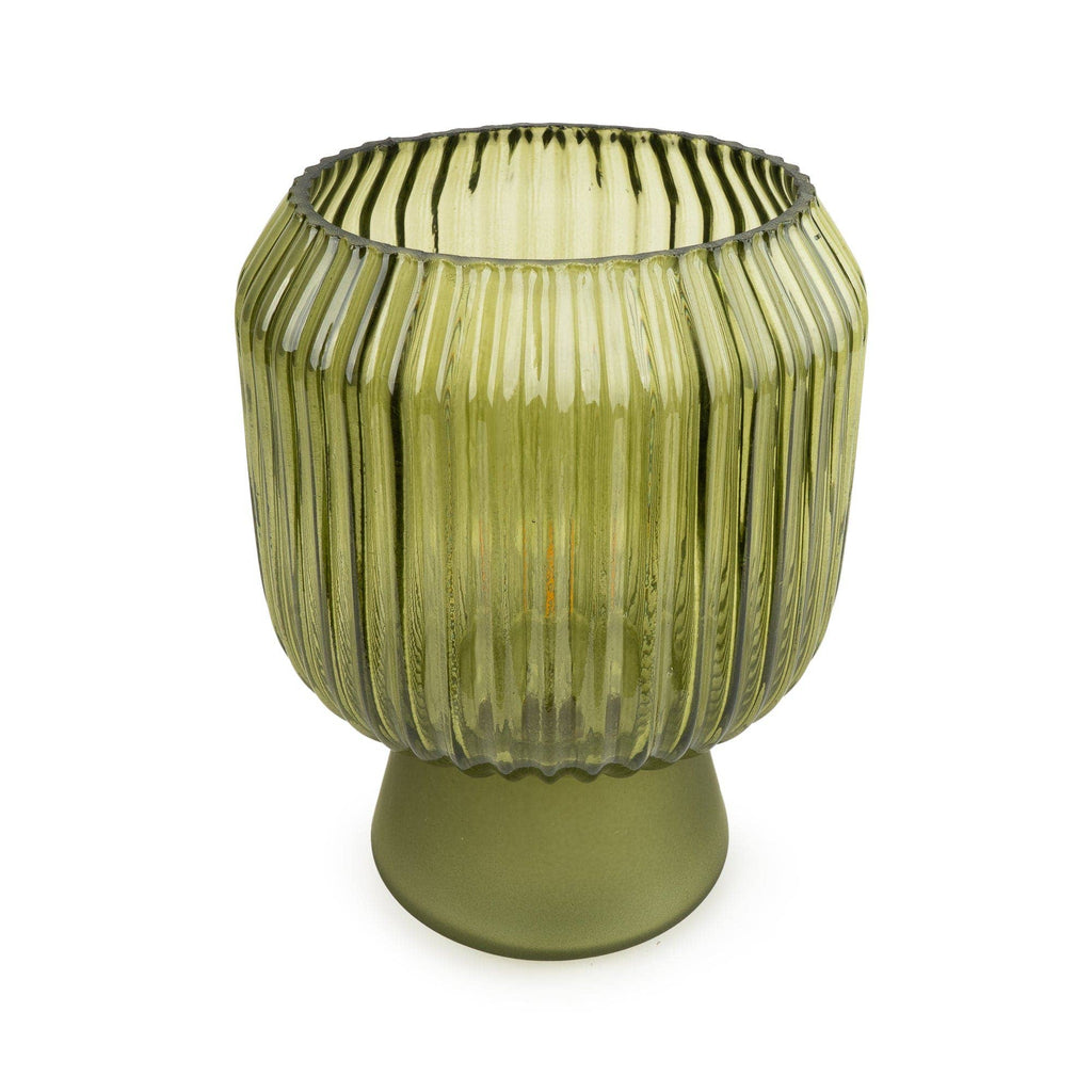 Elevate your interiors with the Ridged LED Lamp in Green, a statement piece that brings both contemporary style and soft ambient lighting to your space. Featuring a distinctive ribbed glass shade in a refreshing green hue and a matching matt-finish base, this elegant lamp creates a calming glow perfect for bedside tables, shelves or cosy corners. The integrated LED light provides energy-efficient illumination, while the ridged texture adds a tactile dimension and retro-inspired charm. A modern must-have for design lovers, this lamp blends practicality with personality in any décor setting.