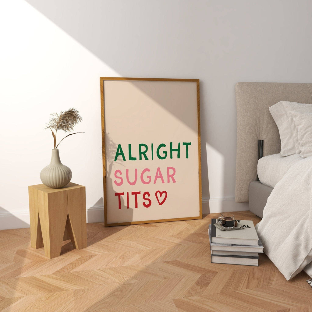 Impress your friends with our Alright Sugar Tits Print! This on-trend, unique design is printed onto 250gsm Matte Premium Paper, using top of the range, pigmented inks to give an ultra high-quality finish.