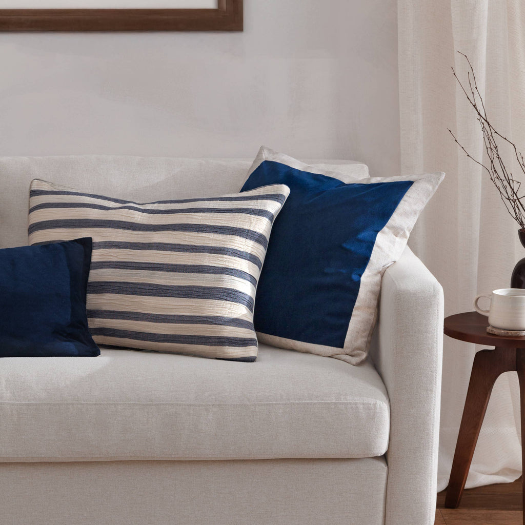 The Merton Velvet Cushion offers a blend of texture and design, featuring a soft matte velvet surface complemented by a contrasting linen-look reverse. Its oxford edging on both sides adds a touch of refinement, making it ideal for introducing depth and sophistication to interiors. Crafted to be both stylish and durable, this oblong cushion is perfect for layering with textured cushions to create a cosy environment. With its versatile design, it enhances the aesthetic of living spaces, whether placed on sofas, armchairs, or beds, while maintaining a relaxed yet elevated appeal. Material Composition: Front:100% Polyester Reverse: 85% Polyester 15% Linen Product Care: Dry Clean