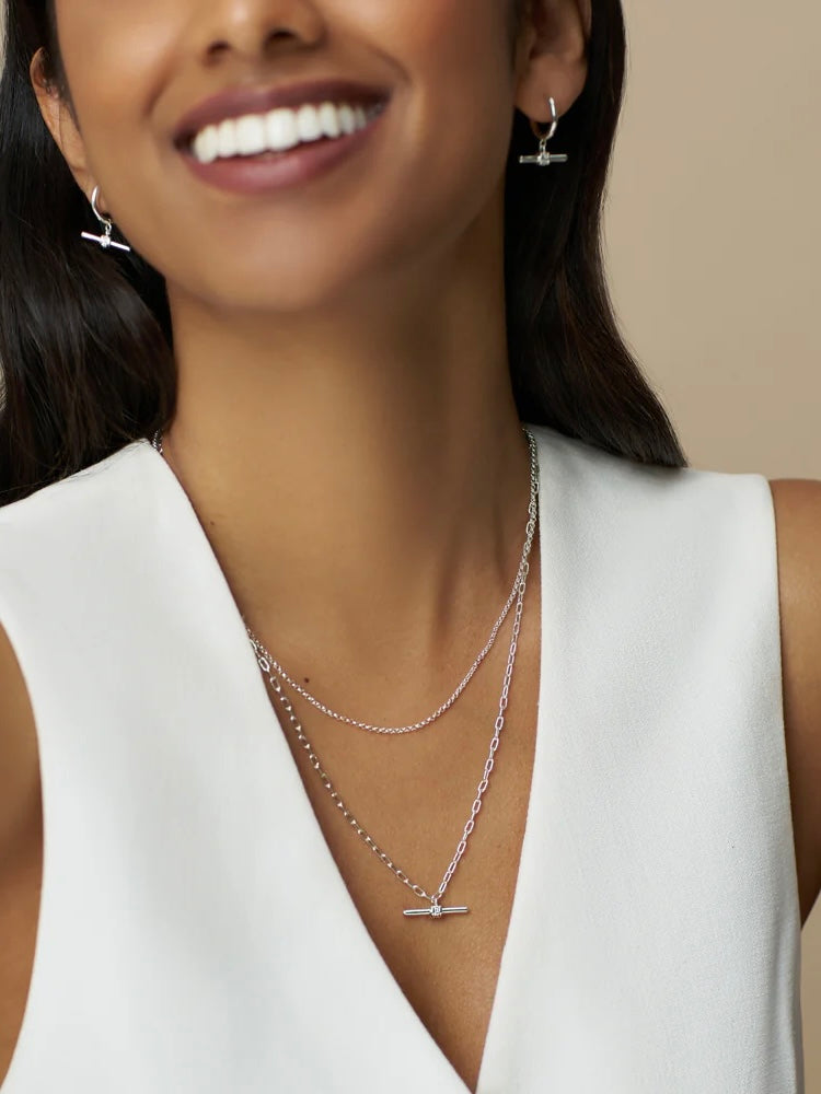 Timeless T-bar hoops meet subtle sparkle in The Crystal Detail T-Bar Hoop Earrings. A chic update on a classic favourite, that complements any outfit. A timeless silver t-bar hoop with a single crystal stone for extra detail. Lightweight and easy to wear all day.