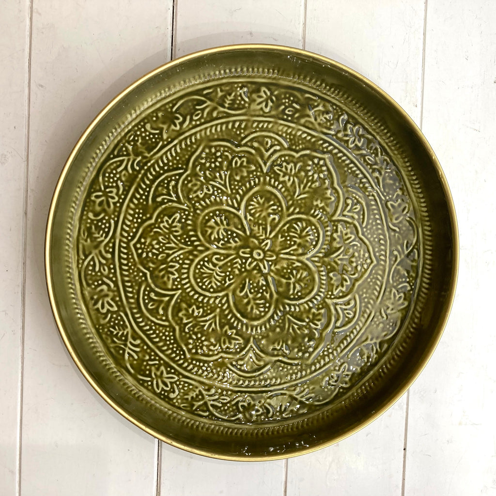 Olive Metal Berbere Tray Large