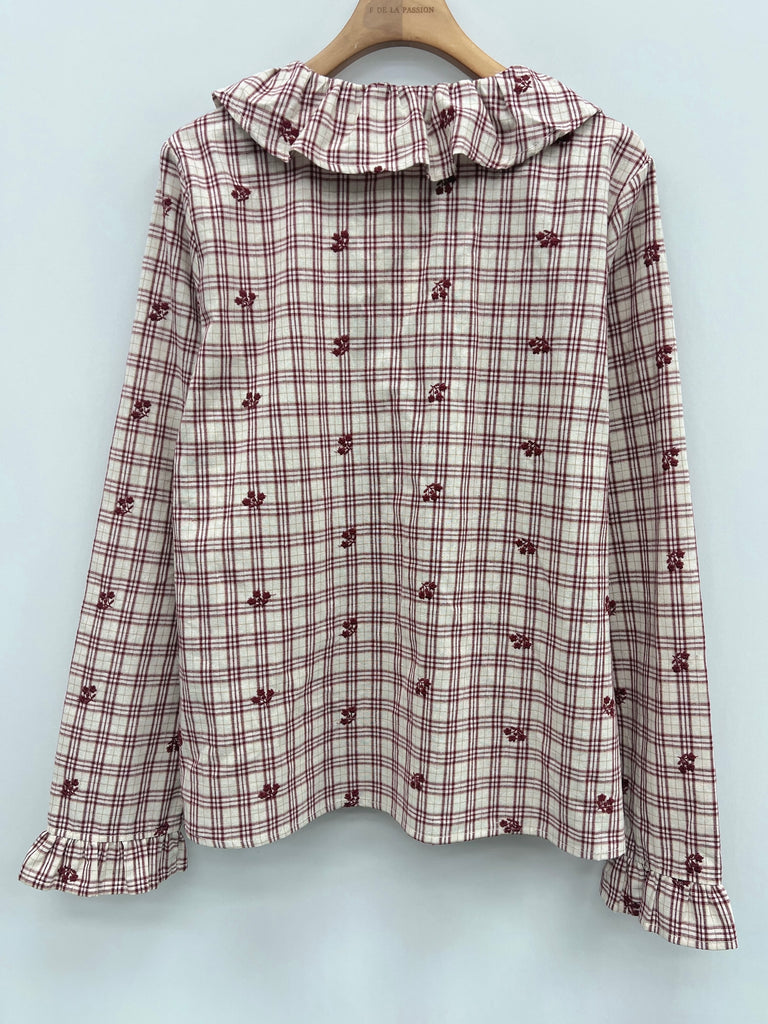 Burgundy Check Sprig Peter Pan Collar Blouse By Lili and Lala