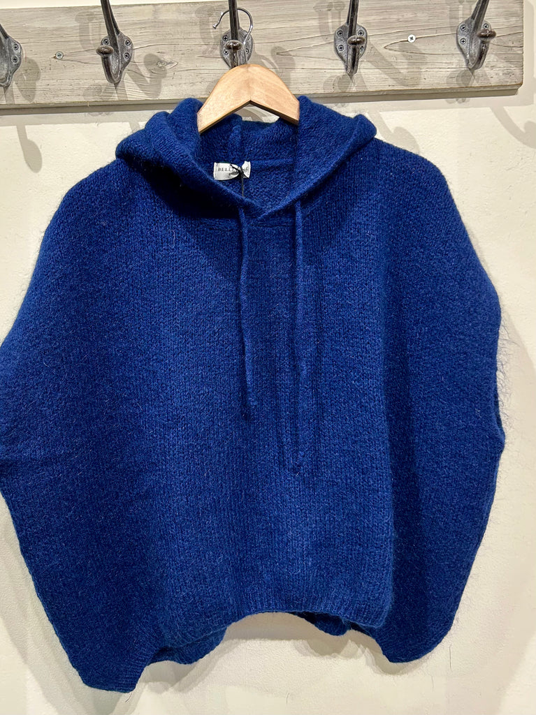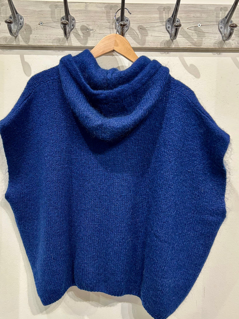 Denim Blue Mohair cardigan with a cropped sleeve and shell button detail.