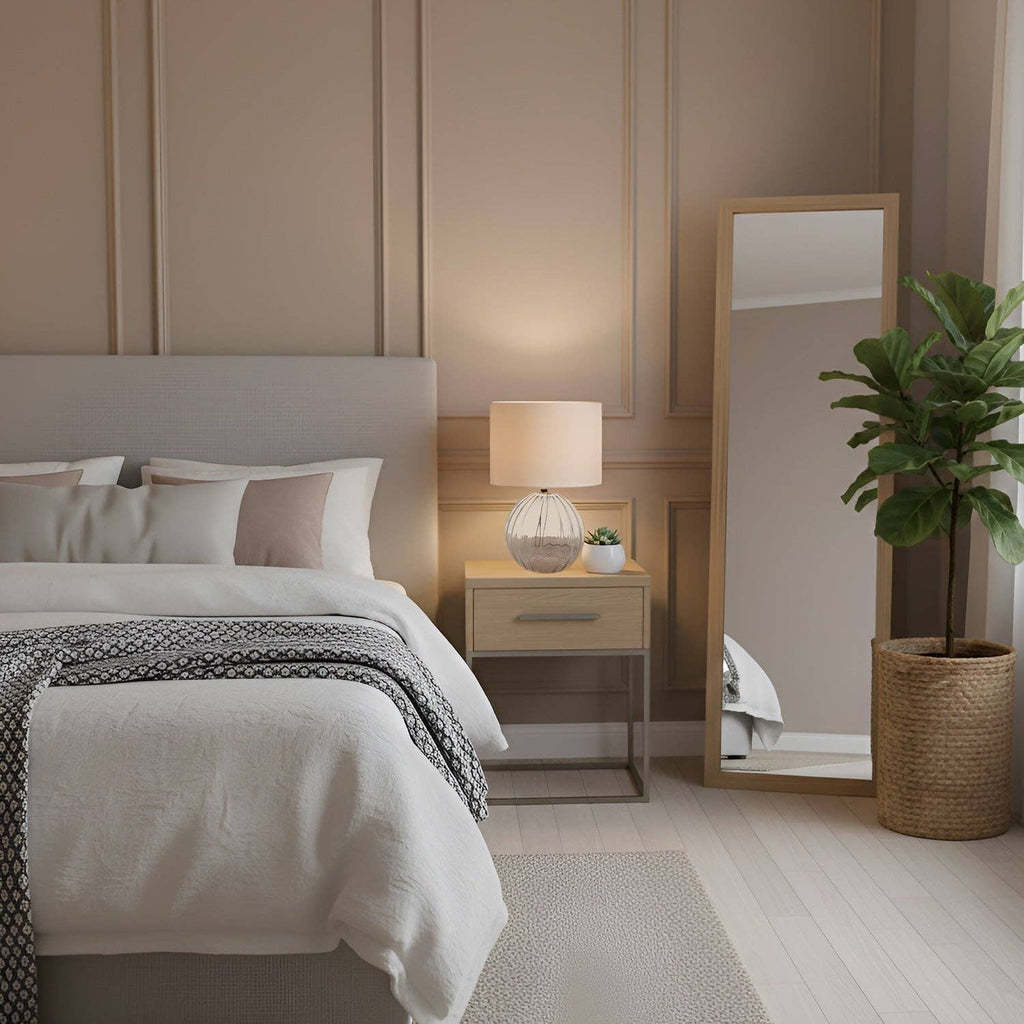Contemporary Clear Ribbed Glass Table Lamp with Velvet Fabric Shade