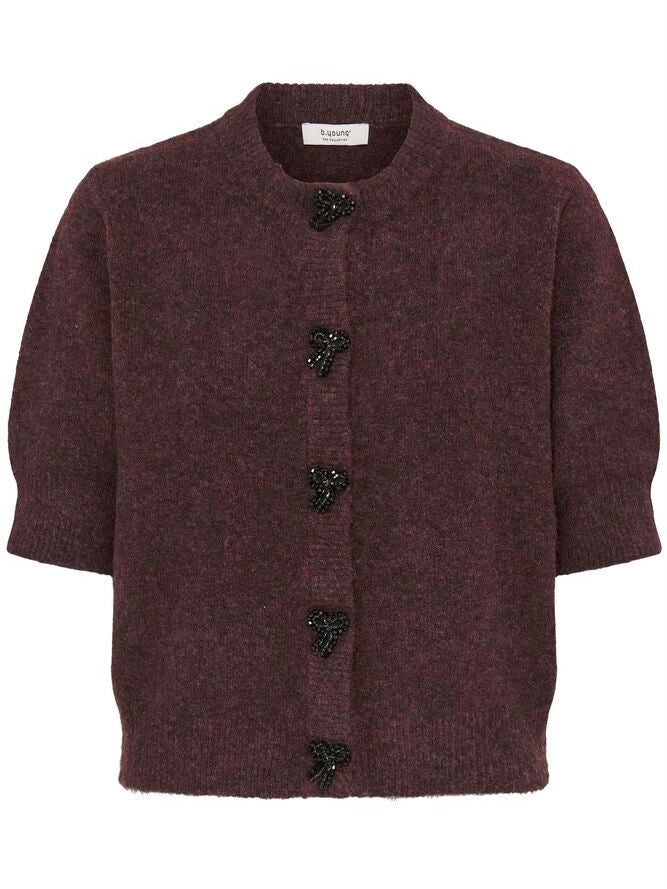 The Burgundy Cardigan With Bow Details by B Young offers a refined blend of comfort and style. Crafted in a soft grey fabric, this cardigan features delicate bow accents that add a subtle feminine touch. Its tailored design ensures a flattering fit, making it an ideal layering piece for both professional and casual ensembles. This cardigan combines elegance with everyday practicality.
