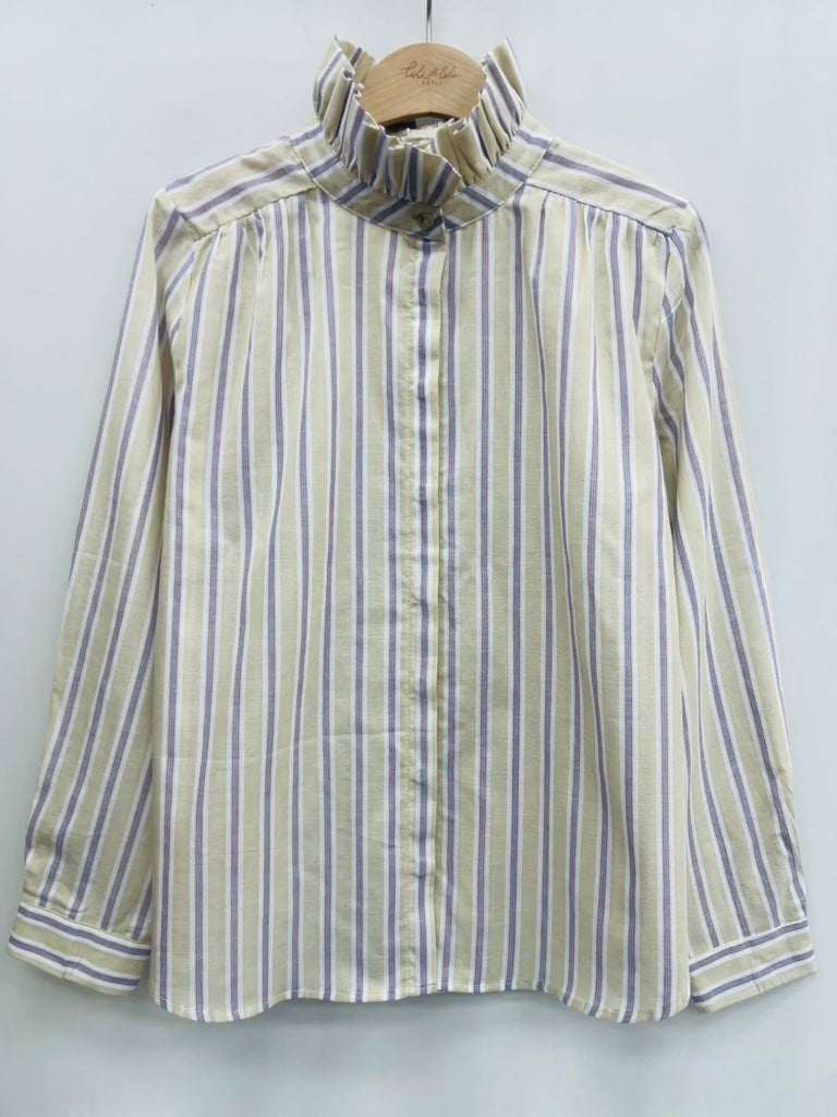 Taupe Stripe Frill High Collar Blouse By Lili and Lala