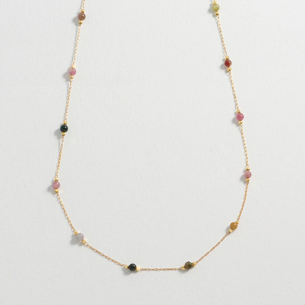 Wellness Tourmaline Gemstone Bead Necklace Gold Plated by Estella Bartlett