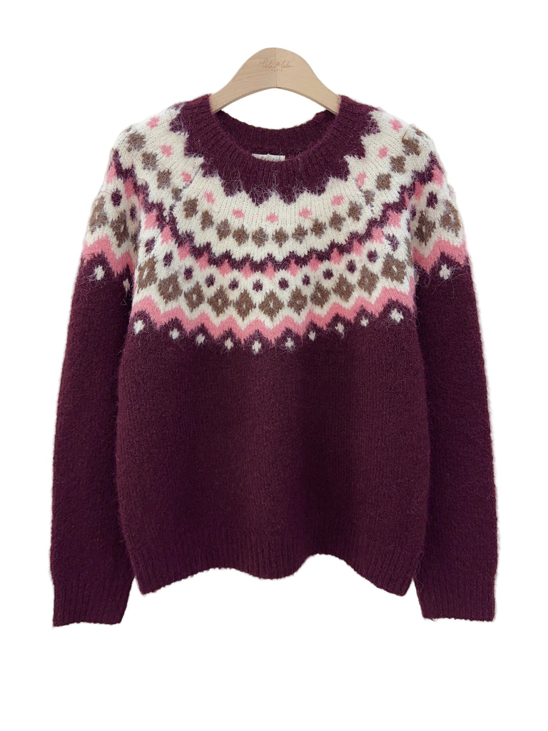 Burgundy Fair Isle Super Soft Jumper by Lili and Lala