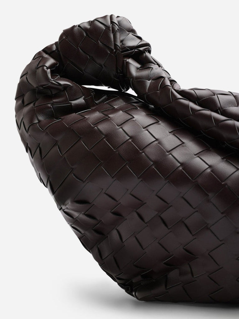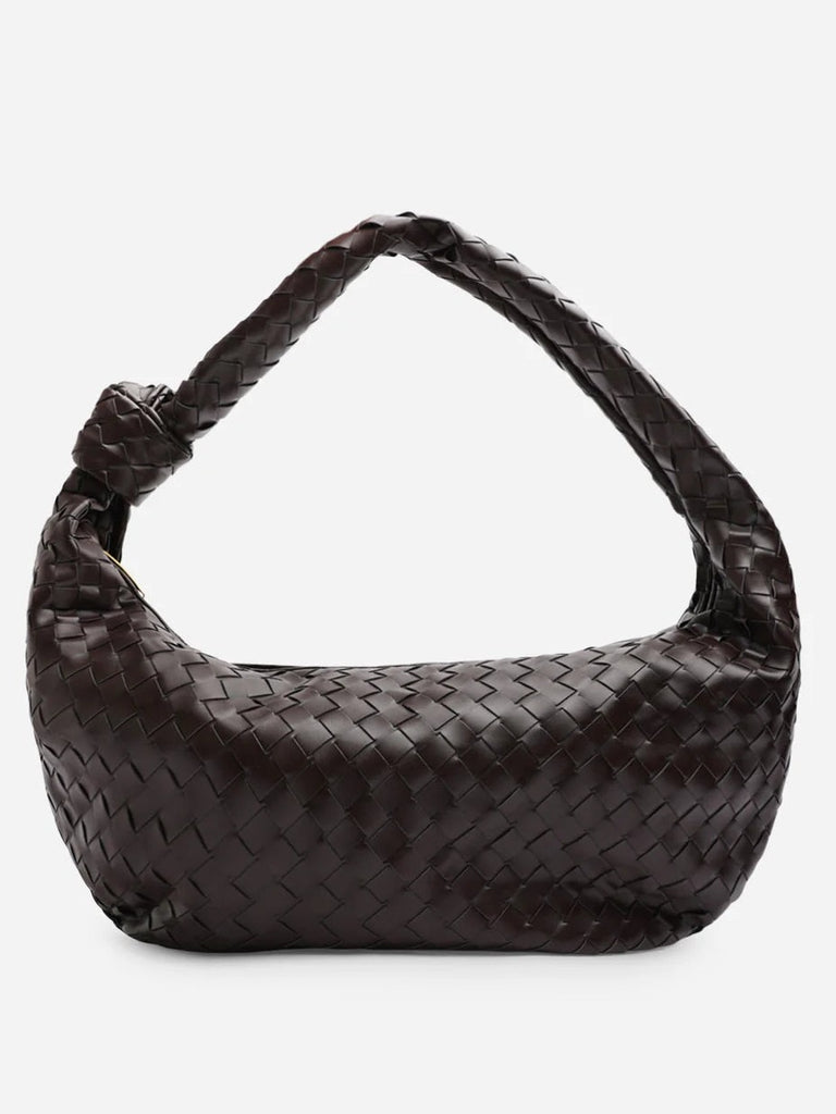 Highly sought-after Knotted Dark Brown Faux Leather Shoulder Bag, a modern icon known for its enduring appeal. This Dark Brown Faux Leather colour is a rich, neutral shade that blends seamlessly across all seasonal palettes, ensuring consistent demand year-round.