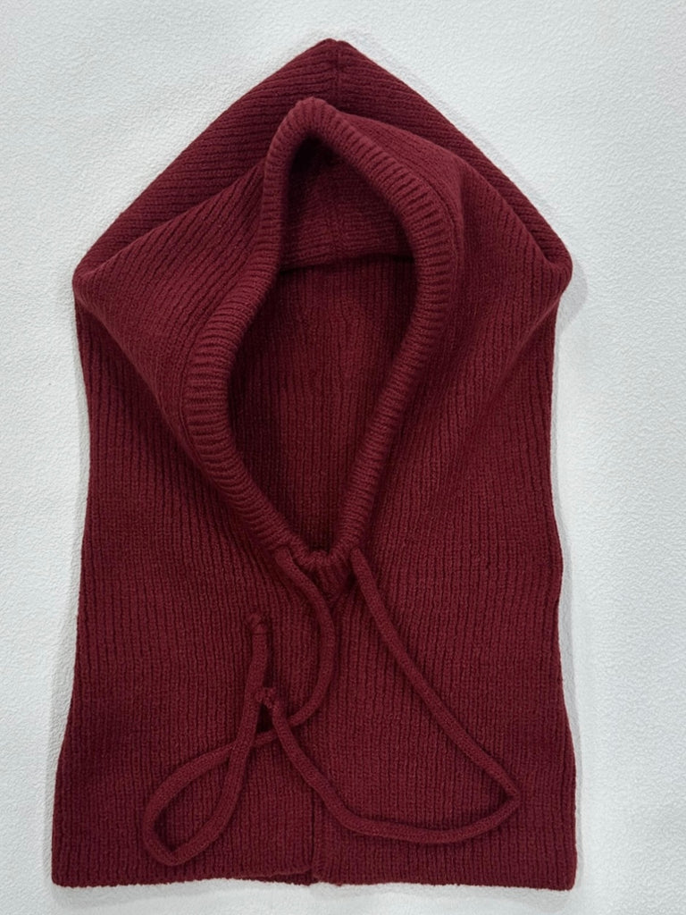 This Burgundy knitted hood makes a perfect alternative to a scarf.