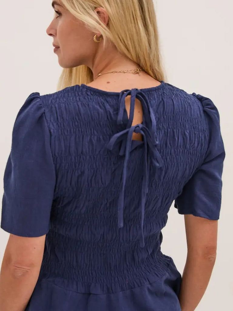 Navy Smock Tie Back Blouse by Fika