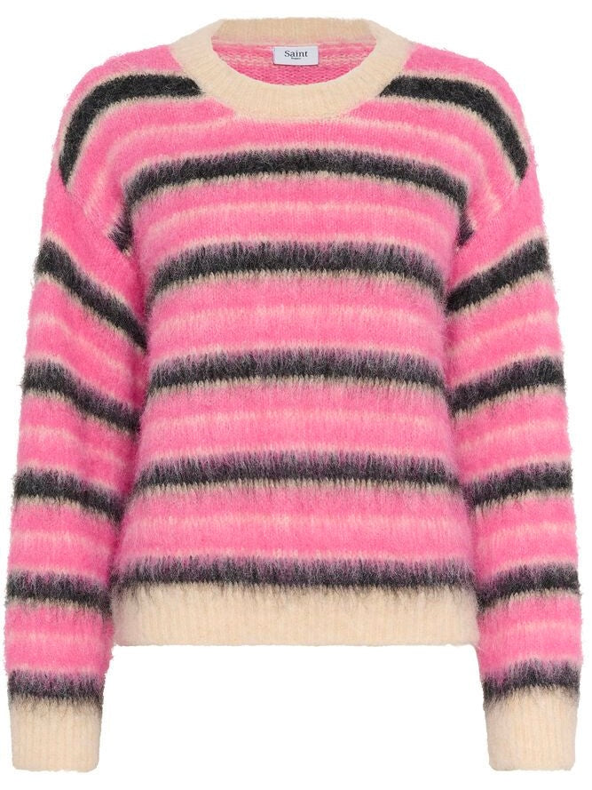 Add a touch of effortless elegance to your wardrobe with the Peony Orchid Striped Jumper by Saint Tropez. Featuring a soft knit texture and a charming peony orchid stripe pattern, this cosy jumper blends comfort with style - it’s a chic essential for the winter season.