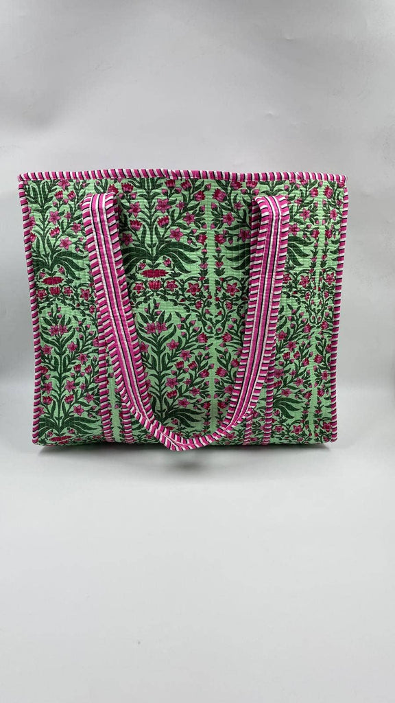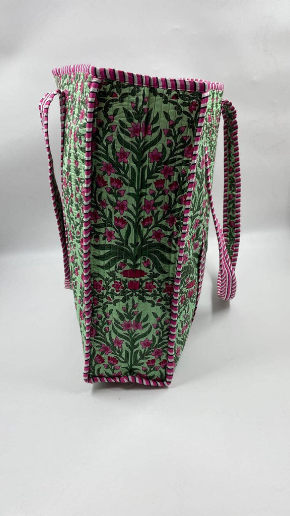 100% Cotton Kantha Quilted Boho Floral Reversible Tote Bag