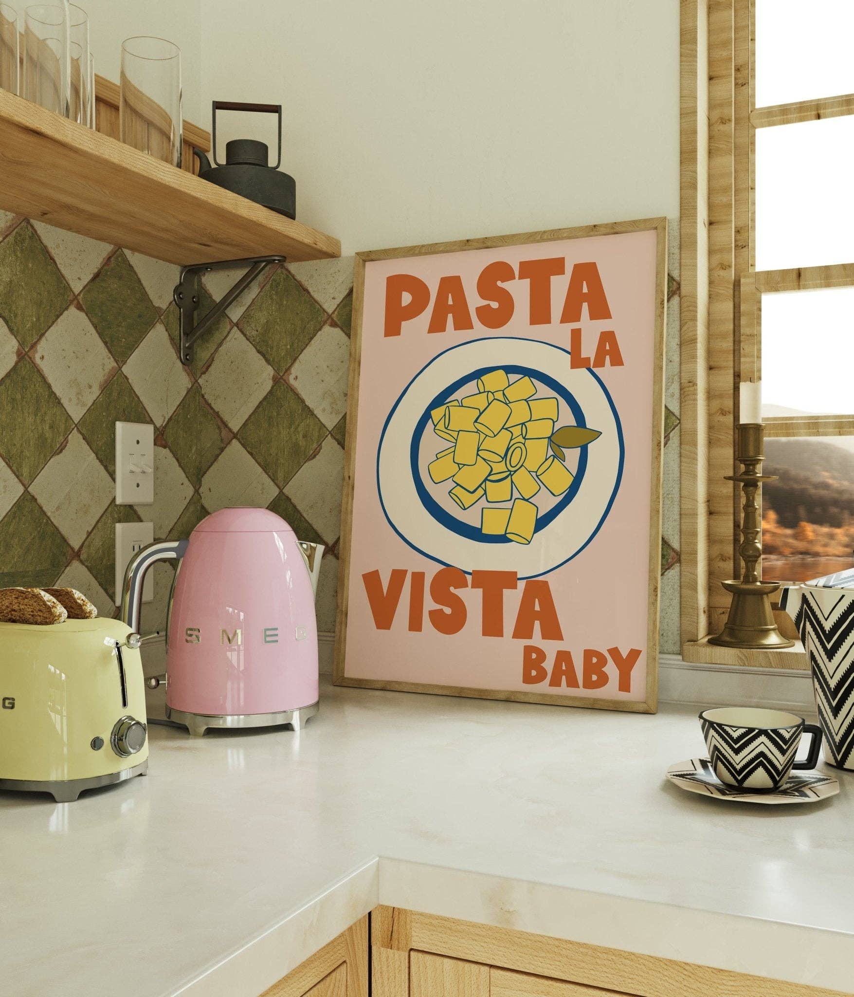 Impress your friends with our Pasta La Vista Kitchen Print! This on-trend, unique design is printed onto 250gsm Matte Premium Paper, using top of the range, pigmented inks to give an ultra high-quality finish.