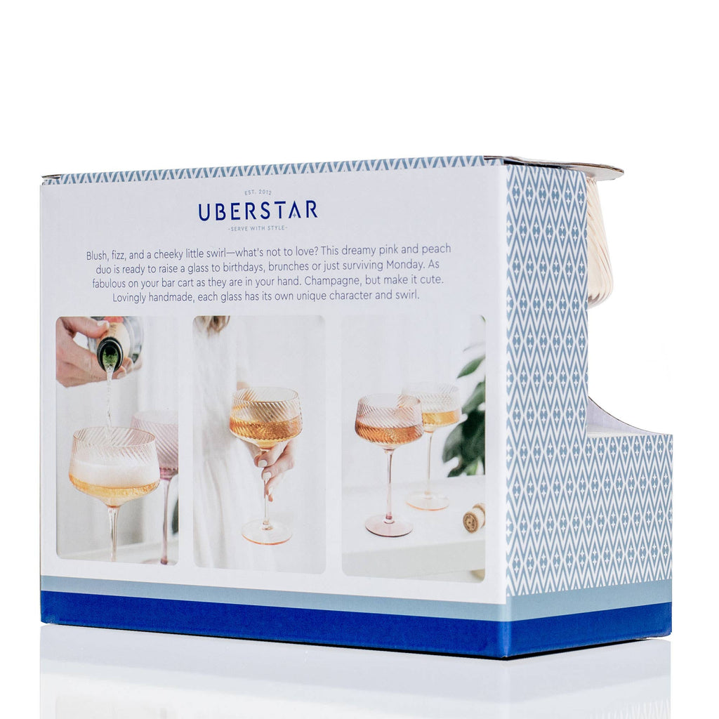 Twist Champagne Coupe Glasses - Set of 2 Pink/Peach